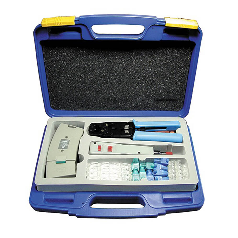 - Bao gồm kìm bấm mạng, dao cắt, dao tuốt, dụng cụ nhấn dây và máy test cáp.