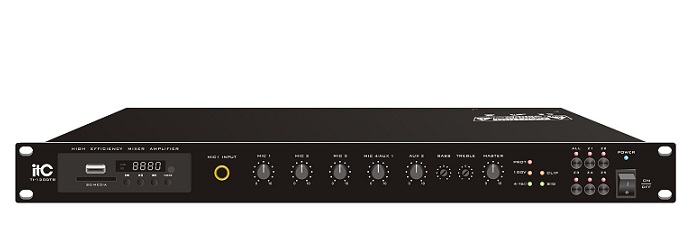 - Amply ITC TI-350DTB có khả năng phân vùng hoạt động tích hợp chọn 5 vùng loa, với công suất hoạt động mạnh mẽ lên tới 350W, thích hợp được ứng dụng trong các không gian có diện tích lên tới 150 mét vuông. Với 3 đầu vào mic, 2 đầu vào aux và 1 EMC, chế độ ưu tiên thông minh cho các cổng kết nối EMC> MIC1> MIC2, MIC3, AUX1, AUX2.