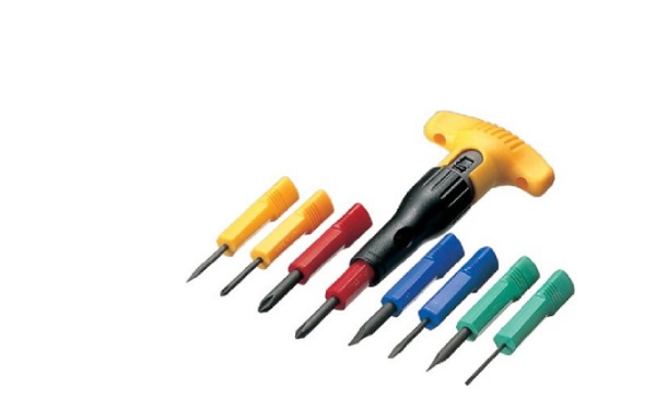 - Bộ tô vít đa năng gồm 8 đầu vít và một cần cấm đầu vít tự động chữ T.