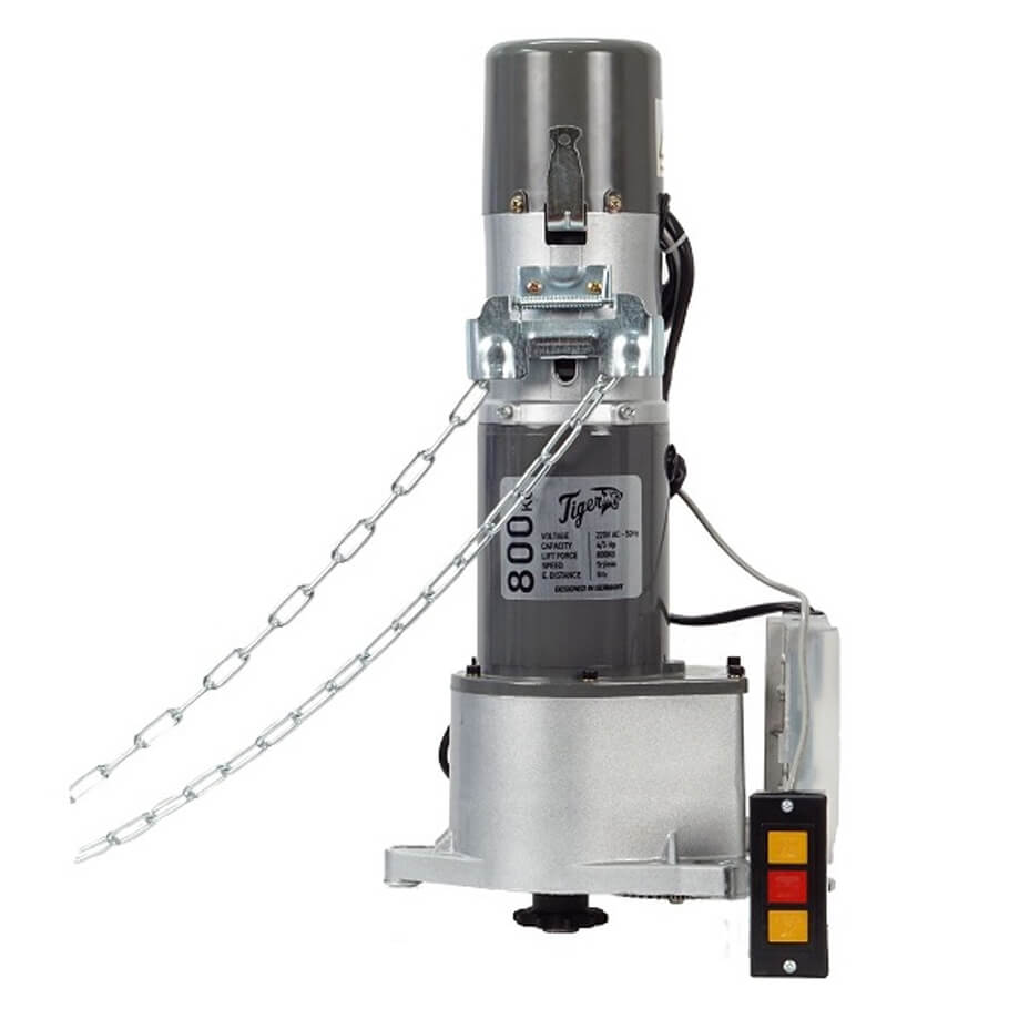 - Motor - Bộ tời cửa cuốn Tiger-800 được thiết kế và sản xuất với công nghệ từ Đức với động cơ cảm biến điện từ 220 Vac-50Hz hiệu suất cao với sức nâng tới 800kg.
