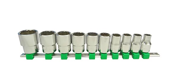 - 10 đầu tuýp gồm các size: 10, 12, 13, 14, 17, 19, 21, 22, 24, 27 mm