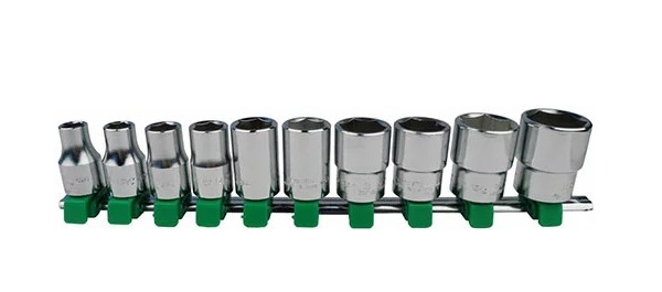 - 10 đầu tuýp gồm các size: 10, 12, 13, 14, 17, 19, 21, 22, 24, 27 mm