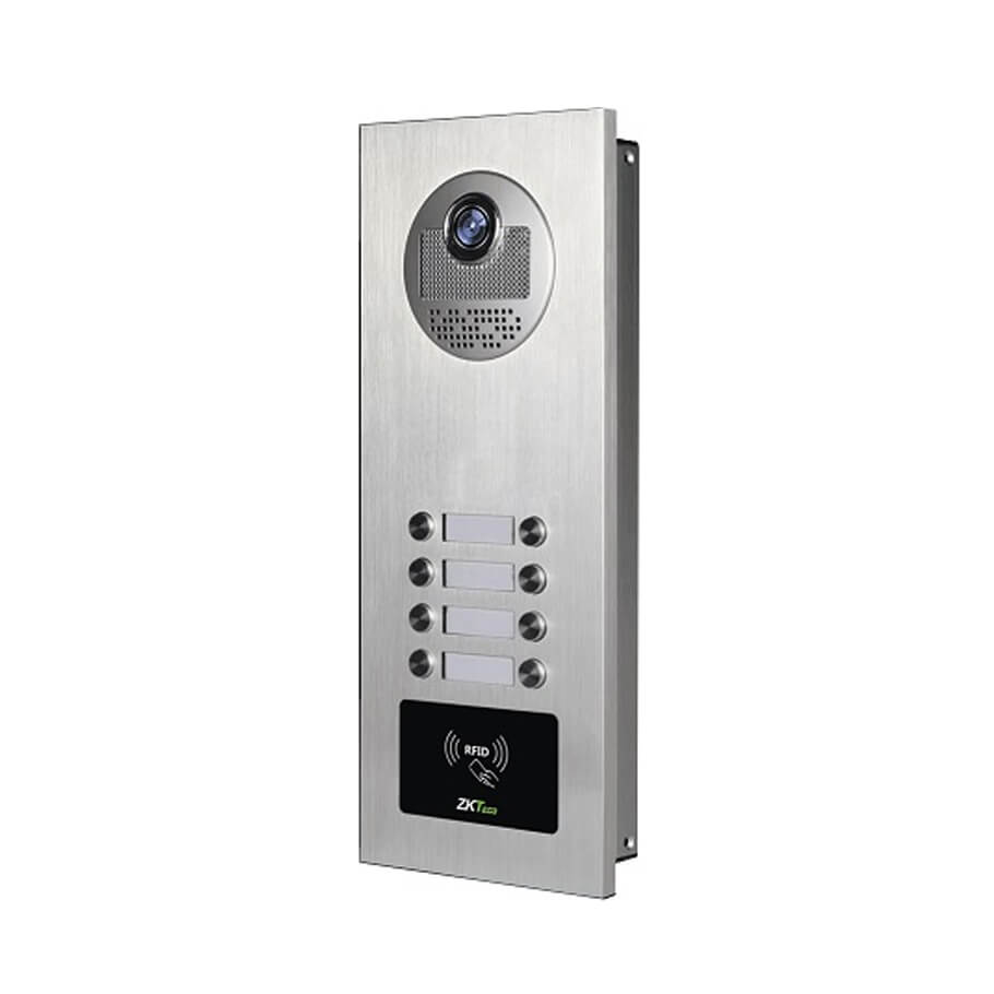 ZKTeco VE08-A01 là thiết bị chuông cửa có hình chuyên dụng cho các tòa nhà nhiều căn hộ, giúp kiểm soát ra vào hiệu quả và an toàn hơn. Sản phẩm được thiết kế để lắp đặt ngoài trời, với vỏ nhôm nguyên khối chắc chắn, hoạt động ổn định trong nhiều điều kiện môi trường khác nhau. Camera tích hợp cho hình ảnh rõ nét cả ngày lẫn đêm, hỗ trợ quan sát và liên lạc trực tiếp với khách từ xa. Hệ thống sử dụng kết nối 4 dây dạng plug-and-play, giúp việc lắp đặt nhanh chóng, tiết kiệm thời gian và chi phí. VE08-A01 là lựa chọn phù hợp cho chung cư mini, nhà trọ, văn phòng hoặc khu dân cư nhiều hộ.