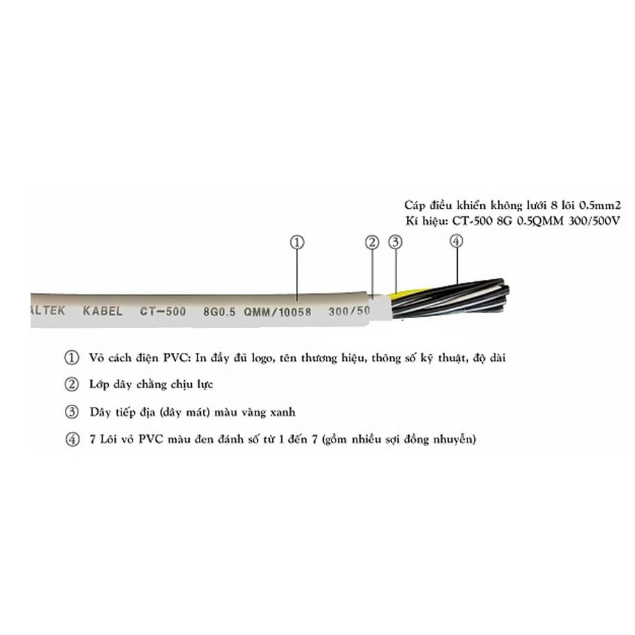 - Tiết diện mỗi lõi 1.0 mm², đáp ứng tốt các yêu cầu truyền tín hiệu điều khiển.