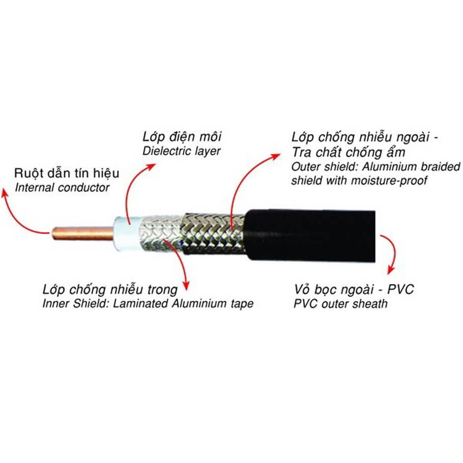 - Lớp chống nhiễu ngoài: Đan lưới sợi nhôm, có chất chống ẩm.