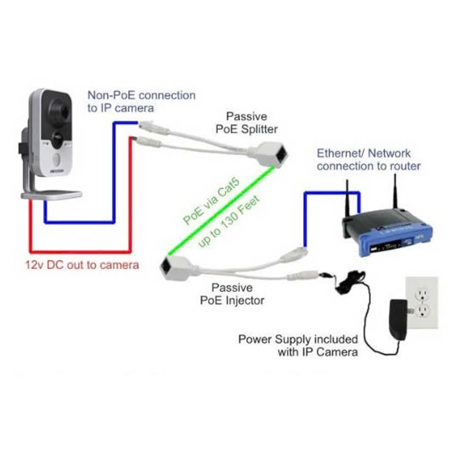 - Cáp gồm 2 phần: Cáp nhận và cáp phát (PoE injector và poe splitter), thiết bị dễ dàng tương thích với các thiết bị Camera IP, Voice IP...