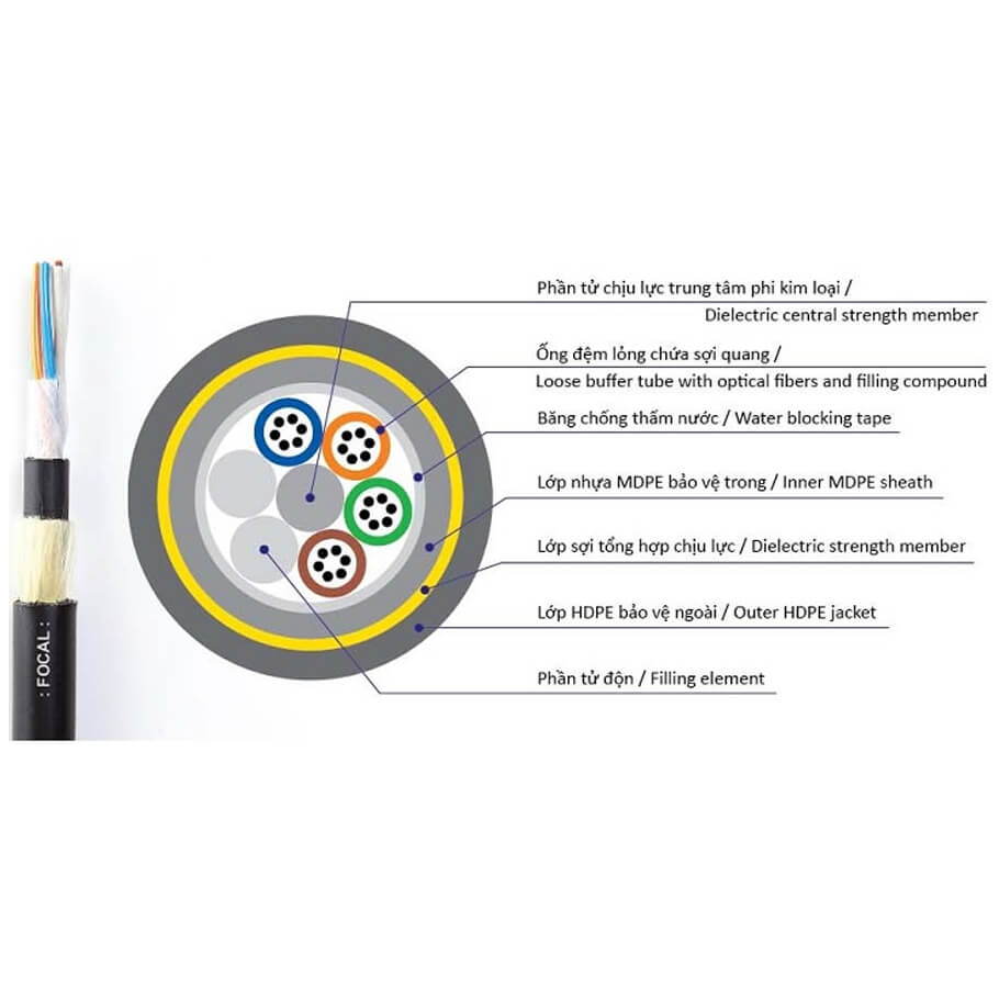 Cáp quang tự treo phi kim loại 24FO FOCAL ADSS24-200