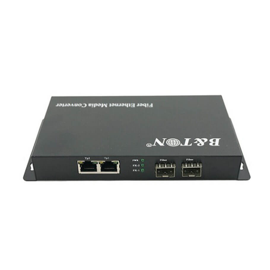 Sản phẩm được trang bị 2 cổng Ethernet Gigabit cùng 2 khe cắm SFP Gigabit, cho phép người dùng chủ động lựa chọn module quang theo loại sợi và khoảng cách truyền. Thiết kế hỗ trợ dạng card hoặc độc lập, phù hợp triển khai trong tủ rack 2U hoặc sử dụng standalone tại các điểm mạng phân tán.