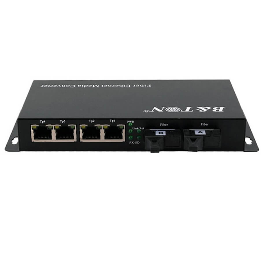- 4 Ethernet Port 10/100M and 2×100Base-F(X) port, 1310nm SM 20Km SC.