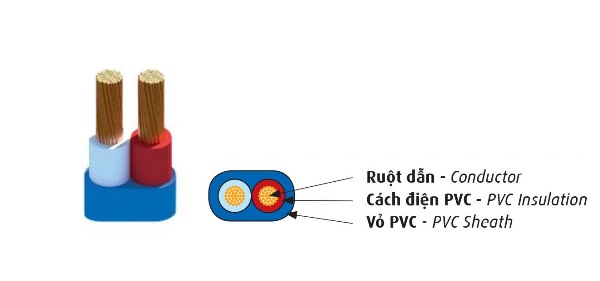 - Dây điện mềm bọc nhựa PVC 300/500V CADIVI VCmo-2x1.5 (2x30/0.25) dùng cho các thiết bị điện dân dụng.