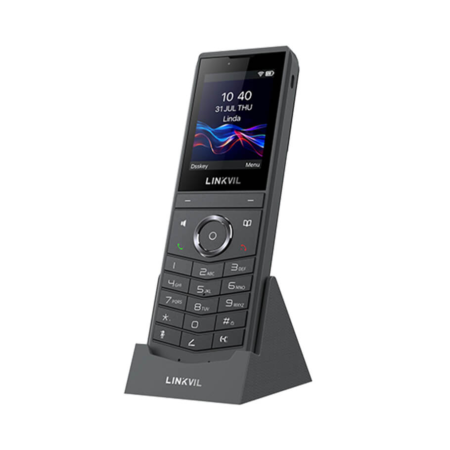 Điện thoại IP Wi-Fi Fanvil W620W là dòng điện thoại cầm tay chuyên dụng dành cho doanh nghiệp, phù hợp cho môi trường làm việc di động như văn phòng, khách sạn, trung tâm thương mại, kho vận hoặc đội ngũ bảo vệ tuần tra. Thiết bị được trang bị Wi-Fi 6 băng tần kép 2.4GHz/5GHz, hỗ trợ roaming liền mạch giúp người dùng di chuyển giữa các khu vực mà vẫn duy trì cuộc gọi ổn định. Fanvil W620W tích hợp Bluetooth 5.0 để kết nối tai nghe không dây, đồng thời hỗ trợ nút PTT chuyên dụng cho liên lạc nội bộ nhanh chóng. Máy sở hữu màn hình màu 2.4 inch, pin dung lượng lớn 3000mAh, thời gian đàm thoại lên đến 13 giờ và thời gian chờ tối đa 240 giờ. Bên cạnh đó, thiết kế chống rơi từ độ cao 1.8m cùng khả năng giảm ồn bằng micro kép giúp thiết bị hoạt động bền bỉ và mang lại chất lượng đàm thoại rõ ràng ngay cả trong môi trường nhiều tiếng ồn.
