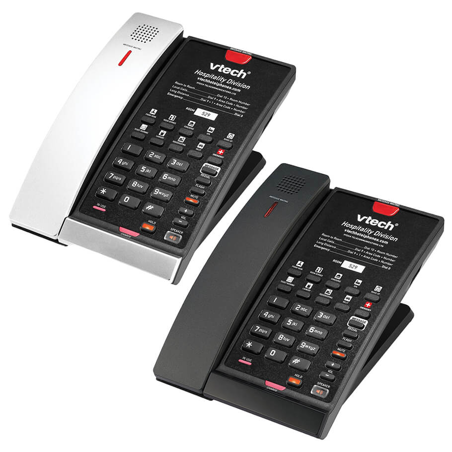 VTech CTM-A2411-BATT là điện thoại analog không dây 1 dòng với tính năng backup battery, mang đến trải nghiệm hoàn toàn không dây trong phòng khách sạn và đảm bảo hoạt động ngay cả khi mất điện. Thiết kế nhựa kháng khuẩn bảo vệ sức khỏe người dùng, đồng thời dễ dàng mở rộng hệ thống với nhiều tay nghe hoặc Petite. Công nghệ DECT 6.0 giúp chất lượng âm thanh rõ ràng, hạn chế nhiễu từ các thiết bị không dây khác. Sản phẩm có loa ngoài, bàn phím có đèn nền và các tính năng tiện lợi giúp khách hàng kết nối dễ dàng và an toàn.