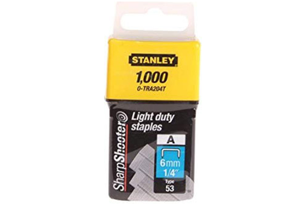 - Ghim bấm Stanley TRA204T có dạng hình chữ U, kích cỡ là 6mm (1/4'), nhờ được làm từ chất liệu hợp kim thép nên ghim có độ cứng cao, không bị mài mòn và gỉ sét theo thời gian.