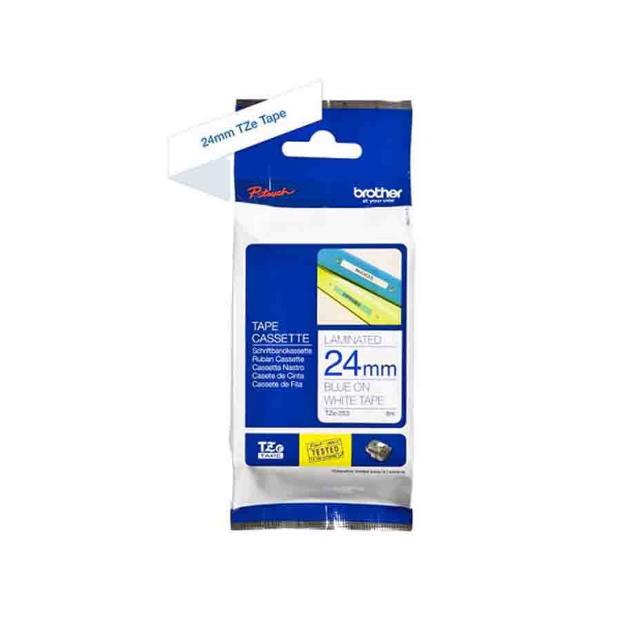 Type: Nhãn TZe siêu dính. Colour: Blue on White. Size: 24mm