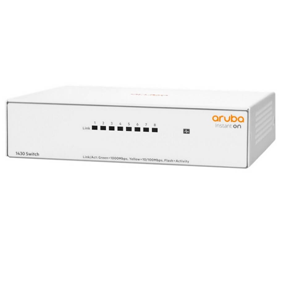 - Thiết bị chuyển mạch Switch Aruba Instant On 1430 5G (R8R45A) là dòng Switch Gigabit Ethernet Unmanaged dễ sử dụng (Plug-and-play) hỗ trợ 8 cổng mạng RJ45 với tốc độ 10/100/1000 Mbps, có chức năng chuyển mạch Layer 2 Ethernet để kết nối với các thiết bị khác mà không cần cấu hình mạng phức tạp. Là giải pháp hoàn hảo cho nhu cầu sử dụng ở phân khúc phổ thông, Aruba 1430 8G (R8R45A) cũng được thiết kế để đáp ứng tất cả các thiết bị trong mạng của người dùng, bao gồm IoT.