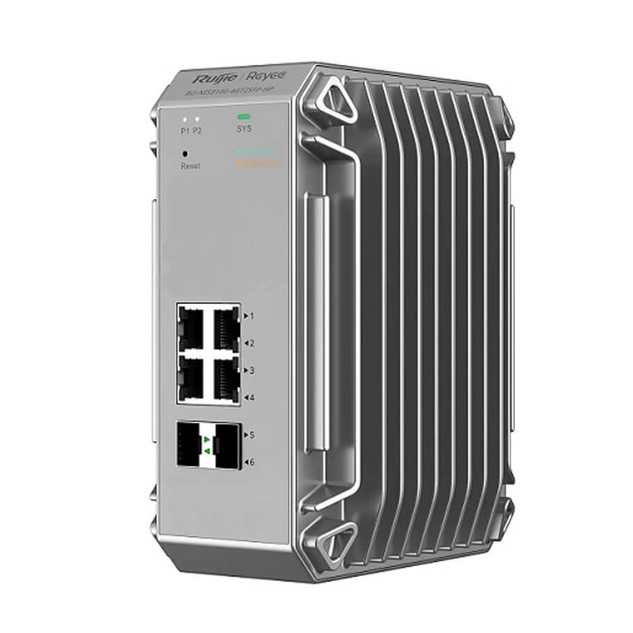 RG-NIS3100-4GT2SFP-HP là dòng switch công nghiệp Layer 2 được thiết kế chuyên biệt cho môi trường khắc nghiệt. Với khả năng vận hành ổn định trong dải nhiệt độ từ -40°C đến +80°C, thiết bị phù hợp triển khai tại nhà máy, trạm hạ tầng, hệ thống ngoài trời hay khu vực ven biển dễ bị ăn mòn muối. Thiết bị sở hữu lớp vỏ hợp kim nhôm chắc chắn, khả năng chống bụi IP40, chống sét lan truyền, và được trang bị tính năng cấp nguồn PoE+ linh hoạt cho nhiều loại thiết bị đầu cuối.