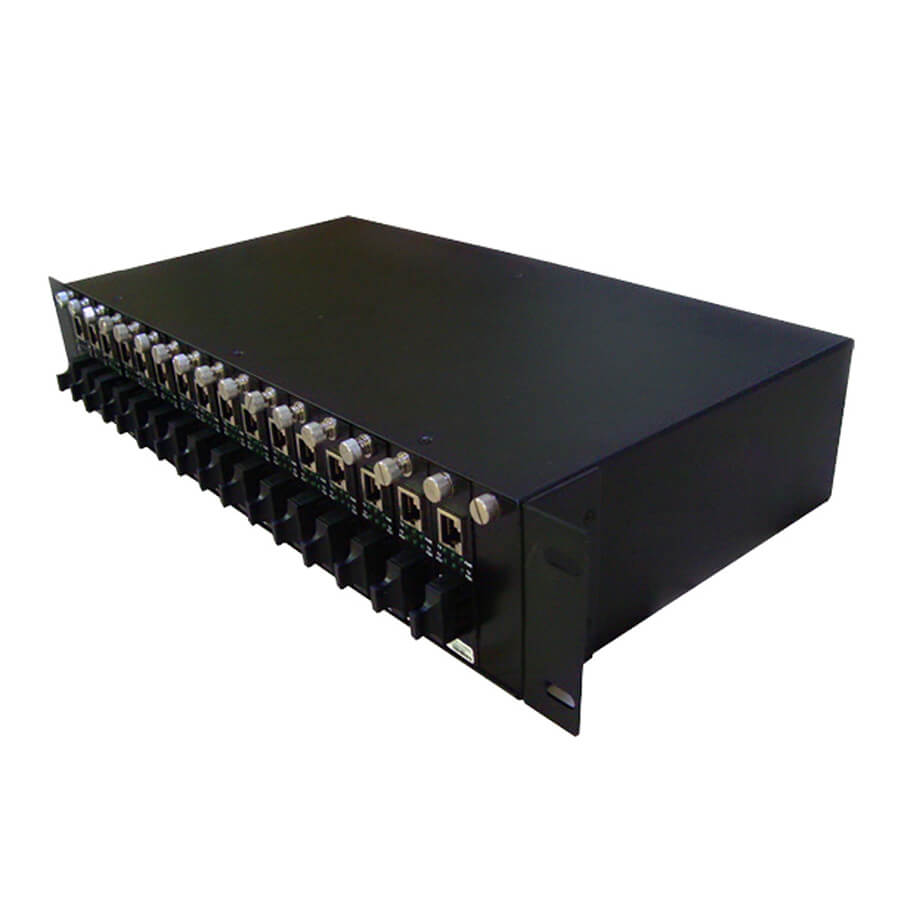 - Thiết kế rack 2U – 14 khe cắm thiết bị: Phù hợp lắp đặt các bộ media converter độc lập trong cùng một khung rack.