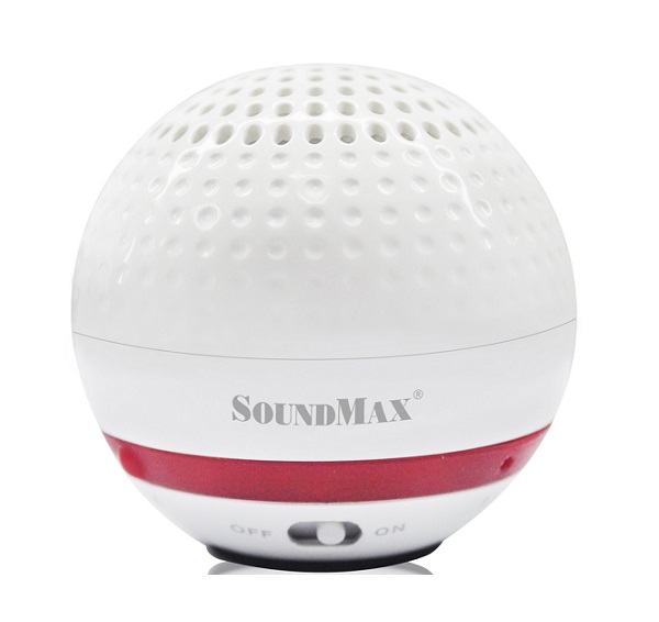 - SoundMax R100 có thiết kế khá đẹp, thoạt nhìn chẳng khác gì một quả banh golf. Người sử dụng R100 có thể đặt chiếc loa này lên mặt bàn làm việc hay tủ kệ, nhưng với một chiếc móc được bố trí khéo léo ở mặt đáy thì người dùng có thể dễ dàng gắn chiếc loa di động này vào chùm chìa khóa cá nhân để thuận tiện mang theo bên mình, tránh thất lạc hay thậm chí giải trí khi cần thiết.