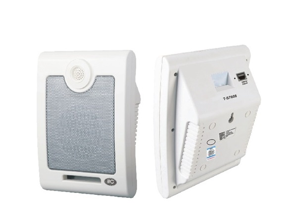 - T-S7608 loa hộp treo tường IP nguồn PoE của ITC với công suất ra 8W. Thiết bị cho phép kết nối trực tiếp mạng LAN và cấu hình linh hoạt bằng phần mềm vận hành âm thanh IP.