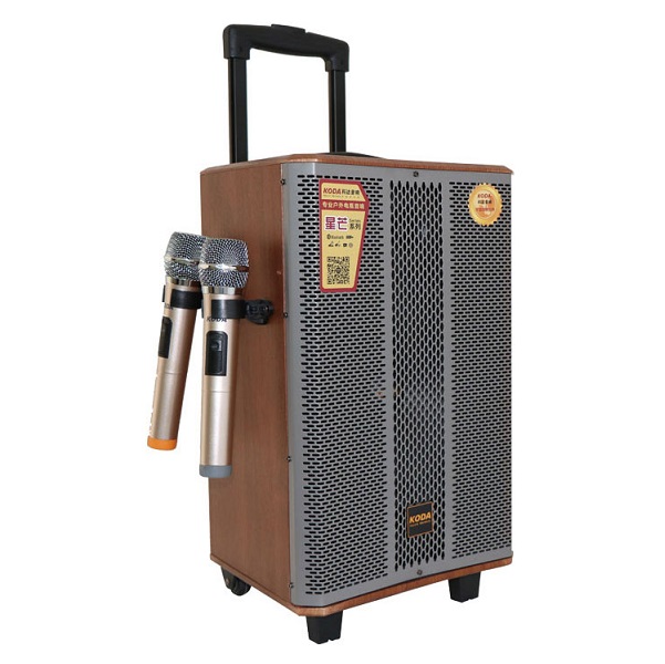 - Koda KD-1005 có thể sử dụng nguồn điện trực tiếp hoặc ắc quy 12V trong thời gian 3 - 6 giờ. Loa di động Koda KD-1005 thiết kế bánh xe cùng tay kéo thuận tiện di chuyển ở mọi địa hình.
