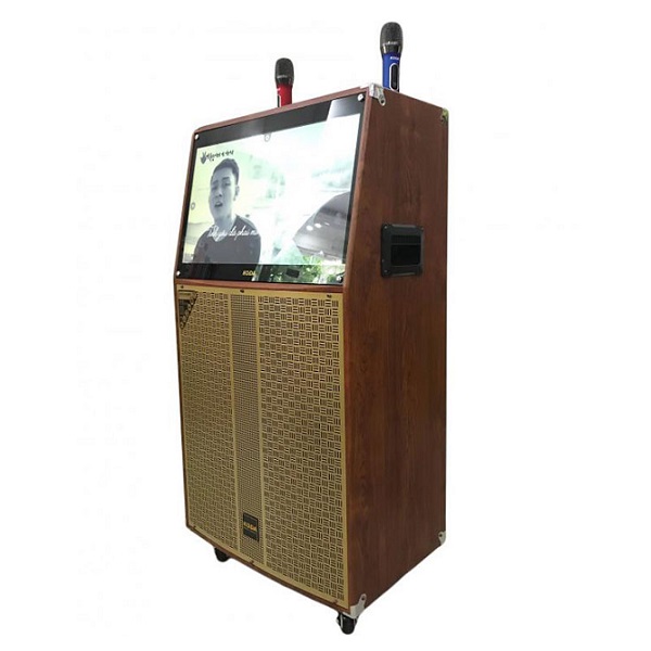 - Đi kèm với loa là 2 chiếc micro không dây có thể kết nối đồng thời để có thể hiện những ca khúc song ca, tay micro được làm bằng kim loại và được sơn phủ màu phù hợp.