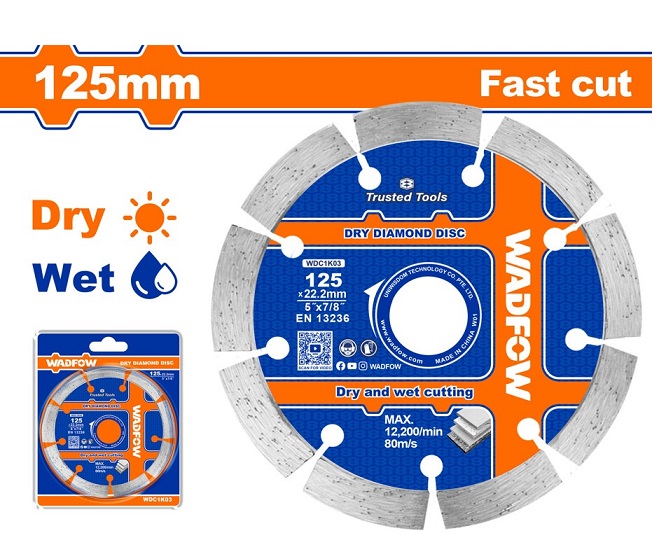 - Lưỡi cắt gạch khô-ướt 125x22.2mm WadFow WDC1K03 là sự lựa chọn lý tưởng cho việc cắt gạch khô và ướt trong các dự án xây dựng, làm đẹp và sửa chữa.