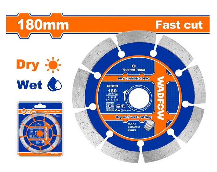 - Lưỡi cắt gạch khô-ướt 180x22.2mm WadFow WDC1K04 là lựa chọn hoàn hảo cho việc cắt gạch trong các dự án xây dựng, sửa chữa, và làm đẹp.