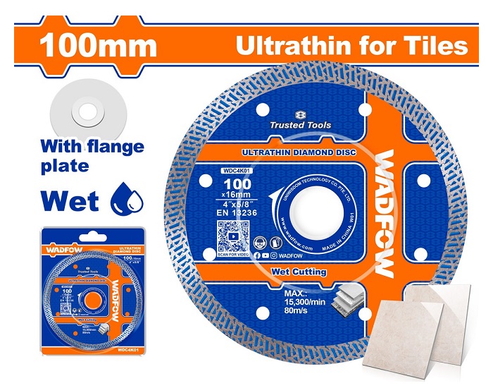 - Lưỡi cắt gạch siêu mỏng 100x16mm WadFow WDC4K01 là một công cụ hoàn hảo cho các nhiệm vụ cắt gạch men, gạch ngói, đá cẩm thạch và gạch xi măng.