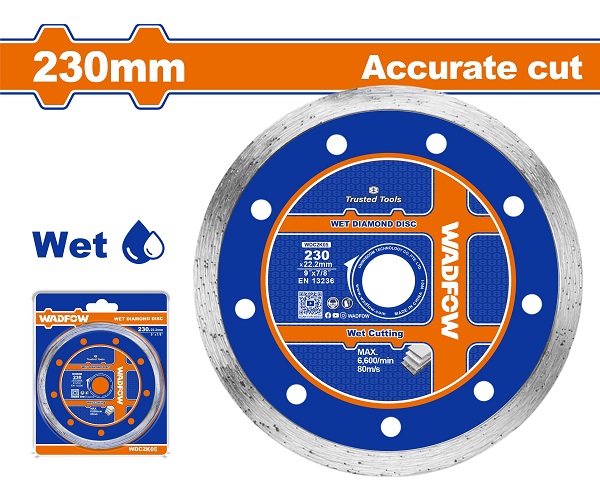 - Với kích thước 230mm (9”) x 22.2mm, lưỡi cắt WadFow WDC2K05 là sự lựa chọn tối ưu cho các công việc cắt gạch ướt có kích thước lớn.