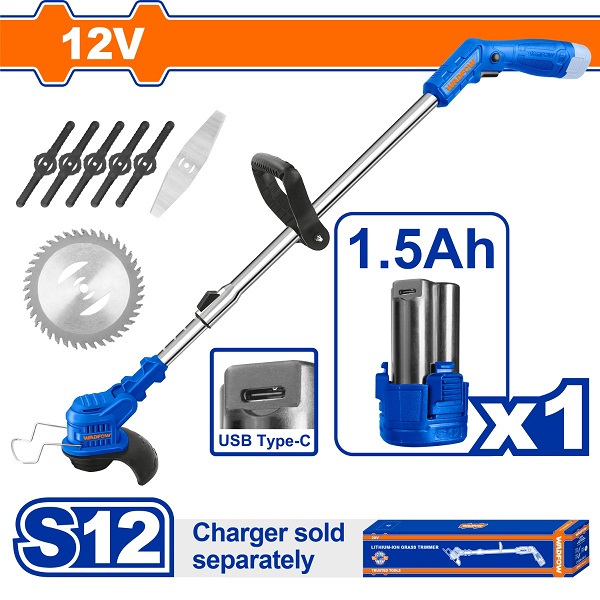 - Với điện áp 12V, máy cắt cỏ WadFow WGTS512 cung cấp sức mạnh ấn tượng cho mọi nhiệm vụ cắt cỏ. Không còn phải lo lắng về sự cản trở, bạn có thể dễ dàng cắt cỏ một cách nhanh chóng và hiệu quả.