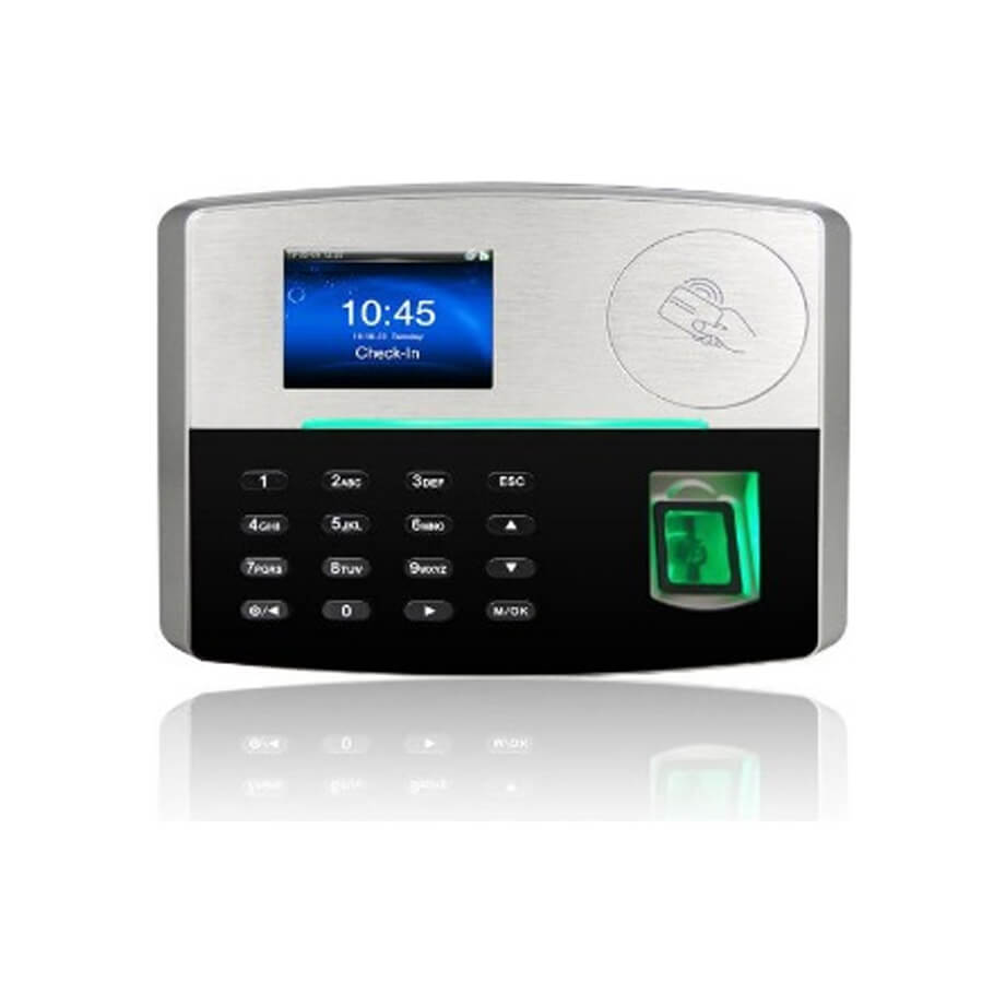 Thiết bị chấm công và kiểm soát truy cập sử dụng công nghệ sinh trắc học hiện đại, đáp ứng tốt nhu cầu quản lý nhân sự trong doanh nghiệp, nhà máy và văn phòng. Sản phẩm nổi bật với khả năng nhận diện vân tay nhanh, chính xác, hạn chế tối đa tình trạng giả mạo. Màn hình màu kích thước lớn giúp thao tác trực quan, dễ sử dụng cho mọi đối tượng người dùng. Pin lưu điện tích hợp cho phép thiết bị hoạt động ổn định ngay cả khi mất điện. Thiết kế treo tường gọn gàng, màu sắc sang trọng, phù hợp nhiều không gian lắp đặt khác nhau.