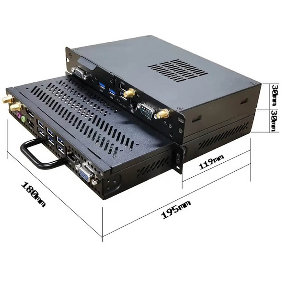 - Giao diện kết nối cổng ra, cổng vào: 1*DC Port, 1*HDMI, 1*DP, 1*VGA, 1*OPS JAE Port, 6*USB 3.0, 1*RJ45, 1*Power Button, 1*Power LED, 1*HDD LED, 2*WIFI Antenna Ports.