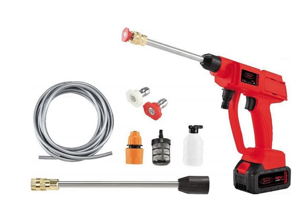 - Kèm theo 1 pin sạc, 1 sạc, 1 dây xịt rửa 5M, 2 béc xịt, 1 thanh nối dài, bình xà phòng, đầu lọc, khớp nối.