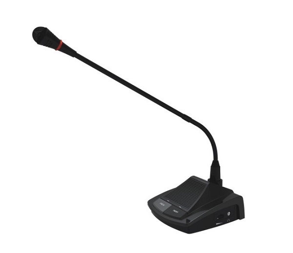 - Có đèn báo trạng thái vòng tròn trên cần MIC. Màu Đỏ - đang phát biểu, màu Xanh - đang đợi phát biểu.
