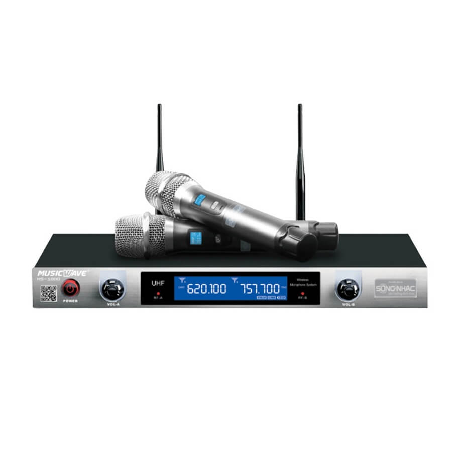 - Micro không dây MUSIC WAVE HS-1080 thiết kế sang trọng, tinh tế, chuyên dùng cho Karaoke chuyên nghiệp, hát với nhau, hội trường, kịch nói, giảng dạy, sân khấu ca nhạc… có vỏ bằng kim loại có chức năng chống trầy cực tốt, ngoài ra còn được thiết kế chống lăn tuyệt đối.