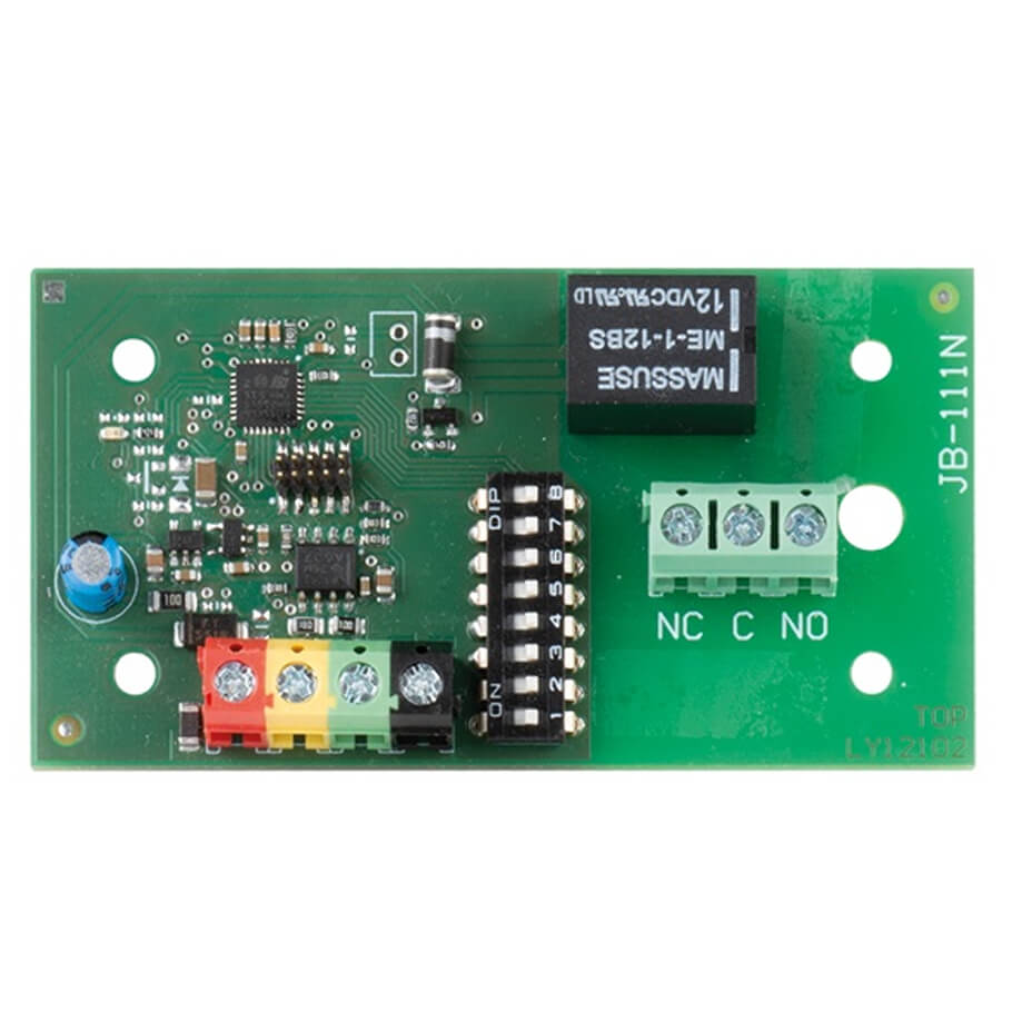 - JABLOTRON JB-111N là thiết bị hệ thống thuộc dòng JABLOTRON 100+. Thiết bị này cung cấp tiếp điểm chuyển đổi cho rơ-le tín hiệu đầu ra. Nó có thể được sử dụng để điều khiển khóa cửa điện, ngắt kết nối, hiển thị tín hiệu, và các ứng dụng tương tự khác.