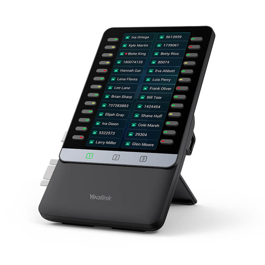 Yealink EXP55 là module mở rộng màn hình màu cao cấp dành cho các dòng điện thoại IP Yealink T7X và T8X. Thiết bị được thiết kế nhằm mở rộng số lượng phím chức năng, giúp người dùng dễ dàng quản lý danh bạ, giám sát cuộc gọi và xử lý nhiều tác vụ liên lạc cùng lúc. Với màn hình màu lớn 5.5 inch cùng giao diện trực quan, EXP55 mang đến trải nghiệm sử dụng hiện đại và chuyên nghiệp hơn cho tổng đài viên, lễ tân, trợ lý hành chính hoặc nhân viên chăm sóc khách hàng. Thiết bị hỗ trợ nhiều phím lập trình nhanh, giúp thao tác gọi nhanh, chuyển cuộc gọi hay theo dõi trạng thái máy nhánh thuận tiện hơn. EXP55 còn hỗ trợ kết nối tối đa 3 module trên cùng một điện thoại, cho phép mở rộng lên tới 234 phím chức năng bổ sung. Đây là giải pháp lý tưởng cho các doanh nghiệp có nhu cầu xử lý số lượng lớn cuộc gọi hàng ngày.