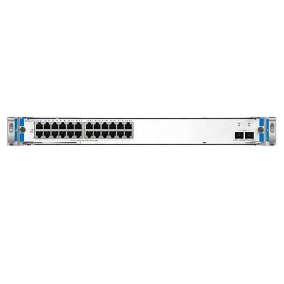 - 24 Gigabit Ethernet copper port (RJ45) + 2 10-gigabit Ethernet fiber port (SFP+, LC).