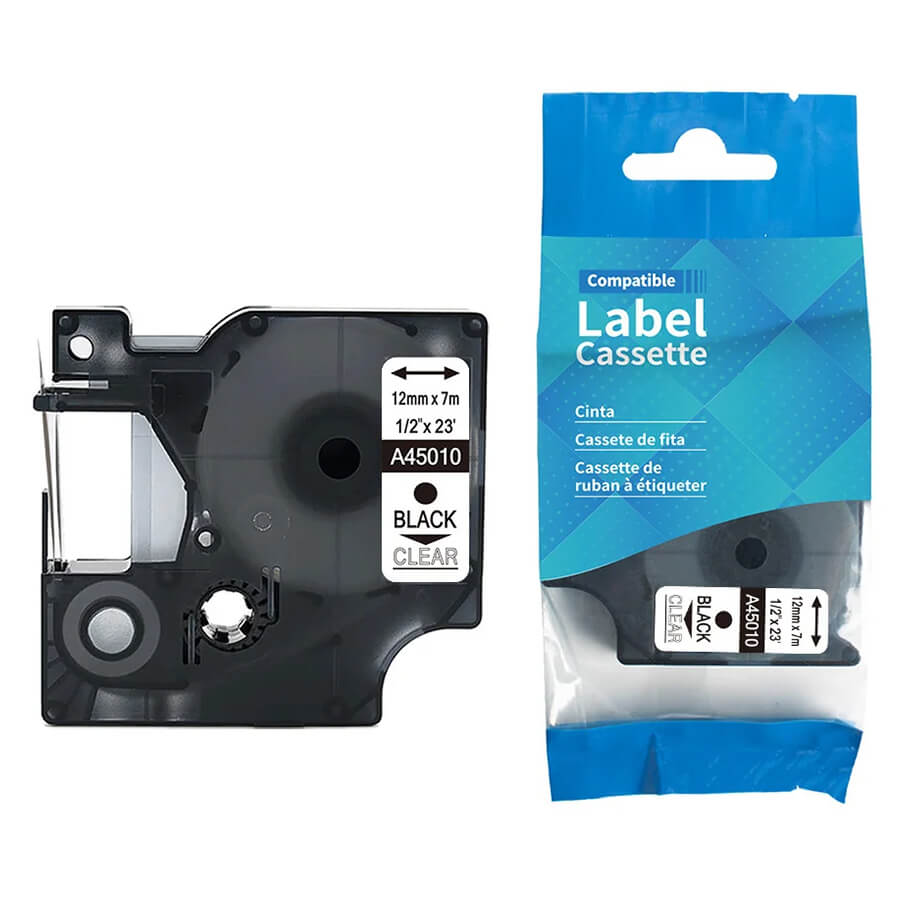 Nhãn in Dymo DM-A45010 – Chữ đen trên nền trong 12mm
