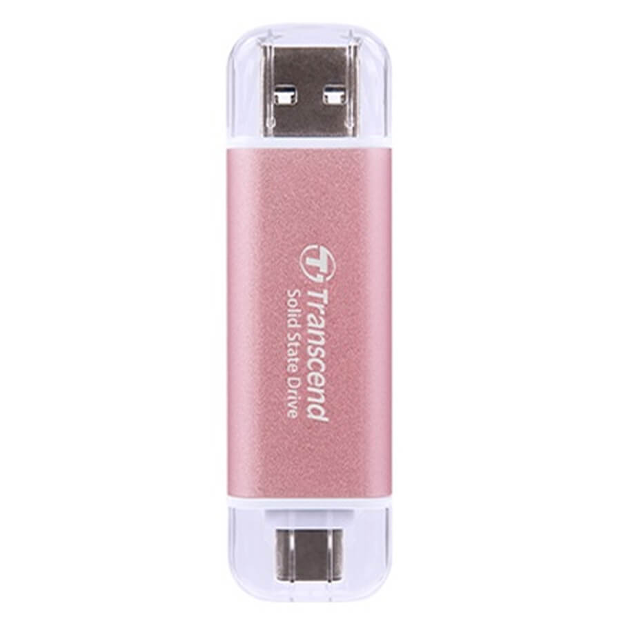 - Transcend ESD310 thiết kế hai đầu nối USB Type-A và Type-C trong một giúp việc kết nối các thiết bị trở nên dễ dàng hơn. Bạn chỉ cần cắm nó vào thiết bị của bạn, không cần cáp và bạn có thể tận hưởng tốc độ truyền tệp nhanh mà không bị chậm trễ!