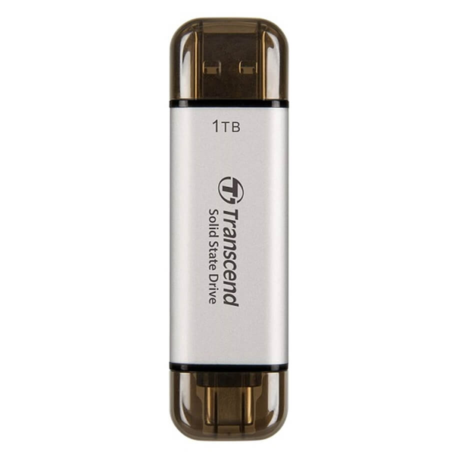 - Transcend ESD310 thiết kế hai đầu nối USB Type-A và Type-C trong một giúp việc kết nối các thiết bị trở nên dễ dàng hơn. Bạn chỉ cần cắm nó vào thiết bị của bạn, không cần cáp và bạn có thể tận hưởng tốc độ truyền tệp nhanh mà không bị chậm trễ!