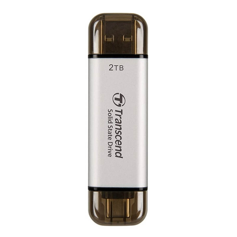 - Transcend ESD310 thiết kế hai đầu nối USB Type-A và Type-C trong một giúp việc kết nối các thiết bị trở nên dễ dàng hơn. Bạn chỉ cần cắm nó vào thiết bị của bạn, không cần cáp và bạn có thể tận hưởng tốc độ truyền tệp nhanh mà không bị chậm trễ!