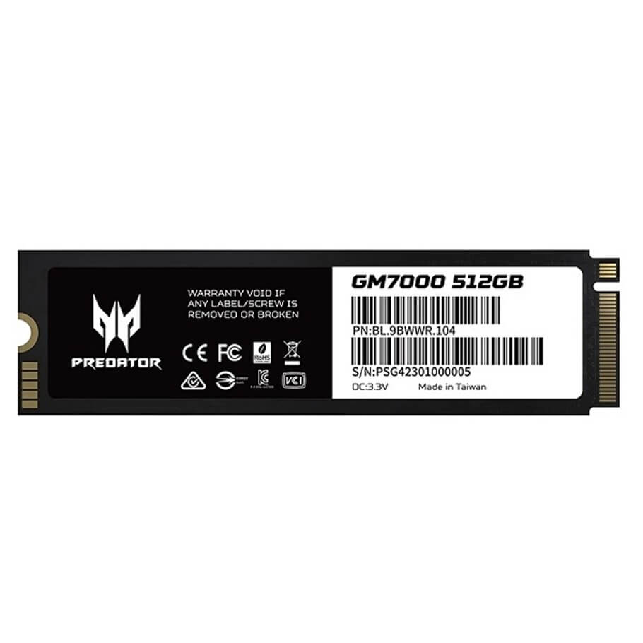 - Predator GM7000-512GB M.2 SSD loại bỏ giới hạn tốc độ khi chơi game (với tốc độ đọc lên đến 7400 MB/s) và cung cấp dung lượng lên đến 512GB. Đây là một ổ cứng SSD có nhiều tính năng, sử dụng PCIe 4.0, bộ điều khiển 8 kênh hàng đầu 12nm, bộ nhớ đệm DRAM độc lập, sửa lỗi 4K LDPC (ECC) và mã hóa AES.