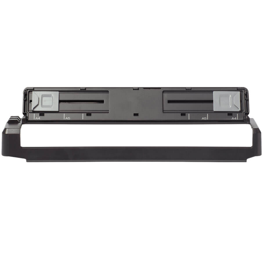 - Điều chỉnh linh hoạt: Nắp trên có thể mở ra để lộ phần gờ dẫn giấy có thể điều chỉnh, phù hợp với nhiều kích thước giấy và nhãn khác nhau.