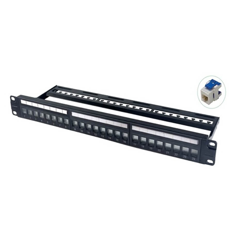 - CAT6 24 port Patch Panel with Dust-proof Shutter (Unshielded, Loaded, 1U)