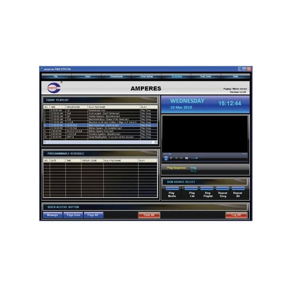 - Lập trình được thời gian hàng tuần để lập lại các bản nhạc, thông báo, lời chào…