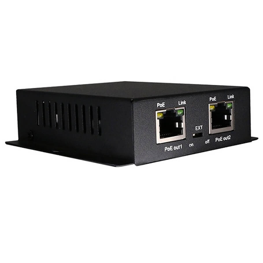 - Thiết bị sử dụng 1 cổng Input Gigabit PoE (802.3af/at) để nhận đồng thời dữ liệu và nguồn, sau đó chia ra 2 cổng Output Gigabit PoE hoạt động song song. Giải pháp lý tưởng khi cần lắp thêm camera IP hoặc AP mà không phải kéo thêm nguồn điện.