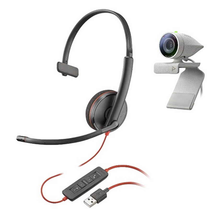 - Poly Studio P5 Kit là Bộ Kit camera hội nghị truyền hình bao gồm camera hội nghị Studio P5 và tai nghe chống ồn Mono Blackwire 3210.