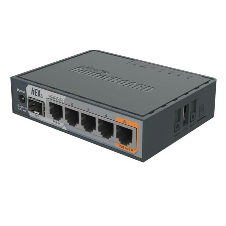 - Router MikroTik RB760iGS, còn được gọi là hEX S là một trong những thiết bị cân bằng tải nổi bật nhất của MikroTik được thiết kế để phục vụ cho các mạng doanh nghiệp nhỏ và vừa, cung cấp hiệu suất cao với mức giá hợp lý. MikroTik RB760iGS được trang bị 5 cổng Ethernet Gigabit và 1 cổng quang SFP 1.25Gb/s đáp ứng tốt cho nhu cầu về mạng lưới tốc độ cao và ổn định, phù hợp cho các văn phòng, cửa hàng bán lẻ hoặc các môi trường cần khả năng quản lý mạng linh hoạt.
