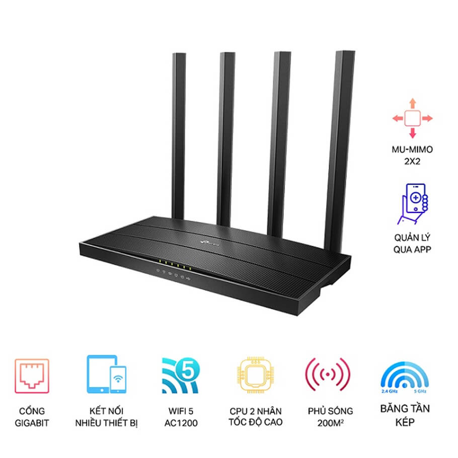 TP-Link Archer C6 là router Wi-Fi băng tần kép chuẩn AC1200, mang đến tốc độ nhanh và vùng phủ sóng rộng, phù hợp cho nhu cầu sử dụng Internet trong gia đình và văn phòng nhỏ. Với thiết kế hiện đại, 4 ăng-ten ngoài mạnh mẽ kết hợp công nghệ Beamforming, sản phẩm đảm bảo tín hiệu Wi-Fi luôn ổn định và tập trung đến từng thiết bị, kể cả khi đặt ở xa.